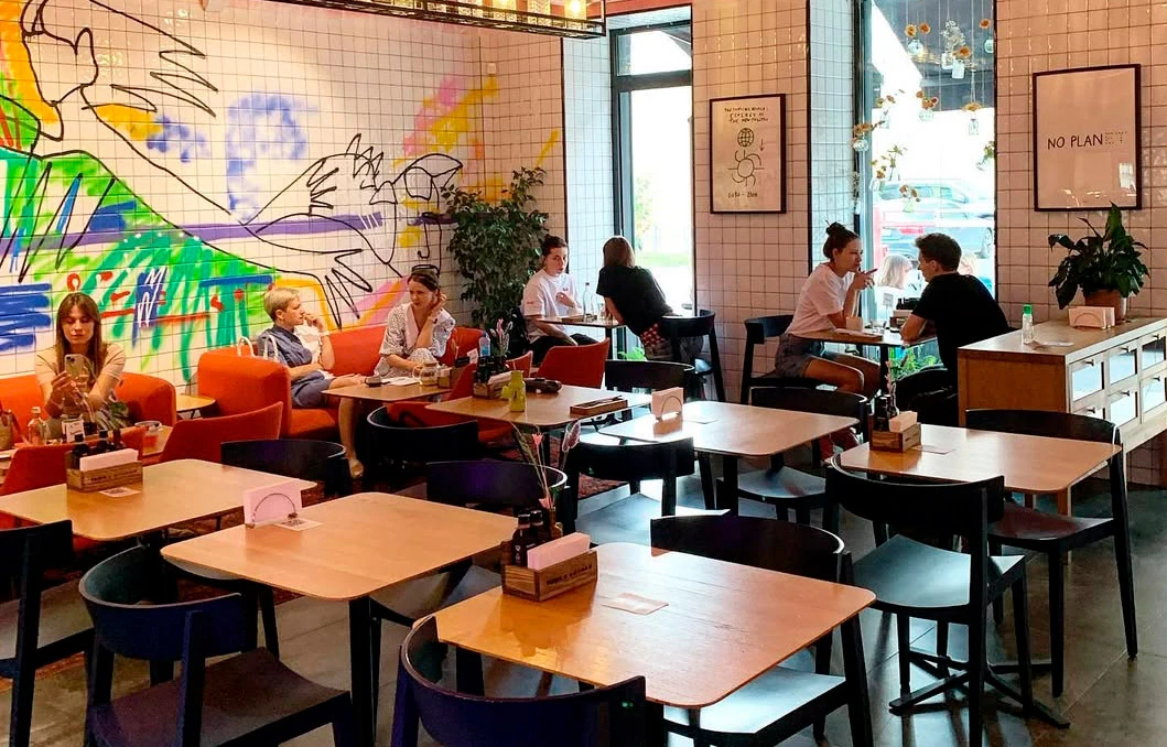 Команда премии RE.AWARDS посетила новые «Циники» у метро «Маяковская» и единогласно отметила: в био-бистро совсем нет московской помпезности. Никакого вычурного дизайна — только светлые стены с рисунками, удобные столы и тёплый свет. В субботу вечером здесь яблоку негде упасть: гости делят общий стол. Но это лишь подтверждает — место знают, любят и ждут.